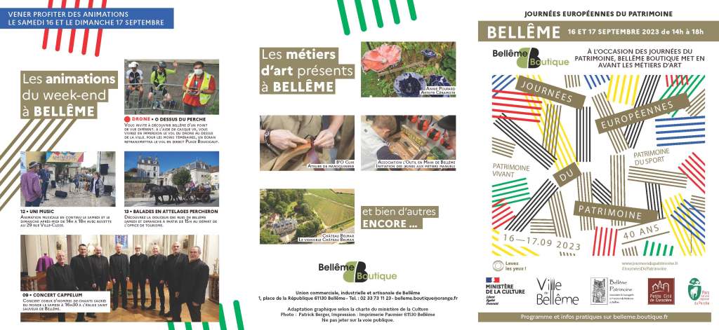 Les Journées Européennes du Patrimoine à Bellême les 16 et 17 septembre 2023 Partager : Cliquer pour partager sur X(ouvre dans une nouvelle fenêtre) X Cliquez pour partager sur Facebook(ouvre dans une nouvelle fenêtre) Facebook J’aime chargement… Similaire